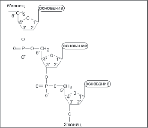 Отдельные основания связаны в цепочке ДНК сахаро–фосфатны–ми связями. Эти связи изображены на следующем рисунке (рис. 2).