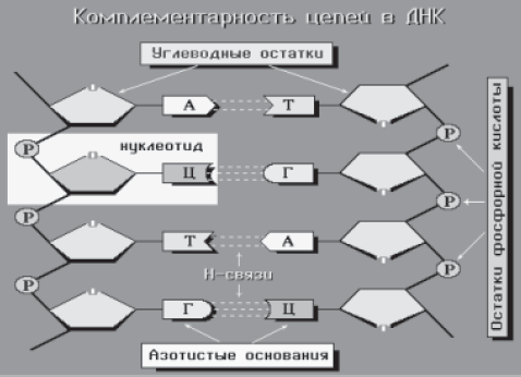 Рис. 3. Схема взаимодействия двух комплементарных цепей в молекуле ДНК