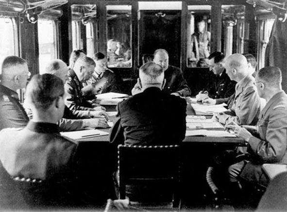 На снимке: 11 ноября 1918 года в Компьенском лесу во Франции, в железнодорожном вагоне, между странами Антанты и Германией было подписано перемирие, ставшее прологом к Версальскому мирному договору, который подвел итоги Первой мировой войны.