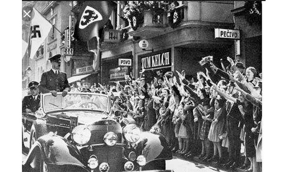 На снимке: Гитлер триумфально въезжает в захваченную им Прагу.