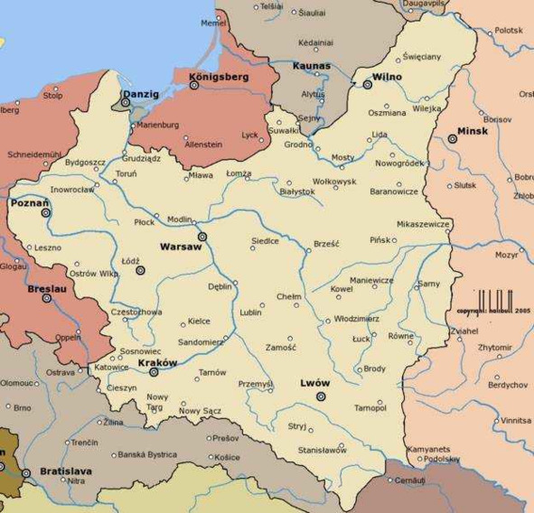 Карта Польши до нападения на неё Германии 1 сентября 1939 года.