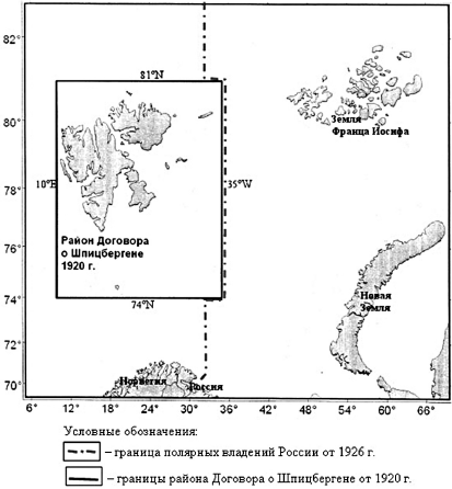 Рис. 1. Границы морских районов, введенные в 1920–1926 гг., которые не препятствовали рыболовству российских судов в Баренцевом море до 1977 г.