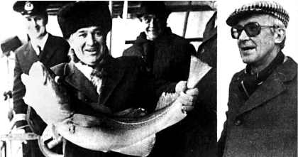 Удачная рыбалка в районе Лафатен руководителя советской делегации В. Зиланова, за которой наблюдает руководитель норвежской делегации Г. Гундерсен