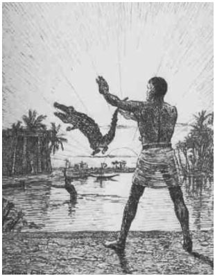 Bunun üzerine Kral, Uba-aner’le gitti. Uba-aner timsaha seslendi: ‘Uşağı buraya getir.’
