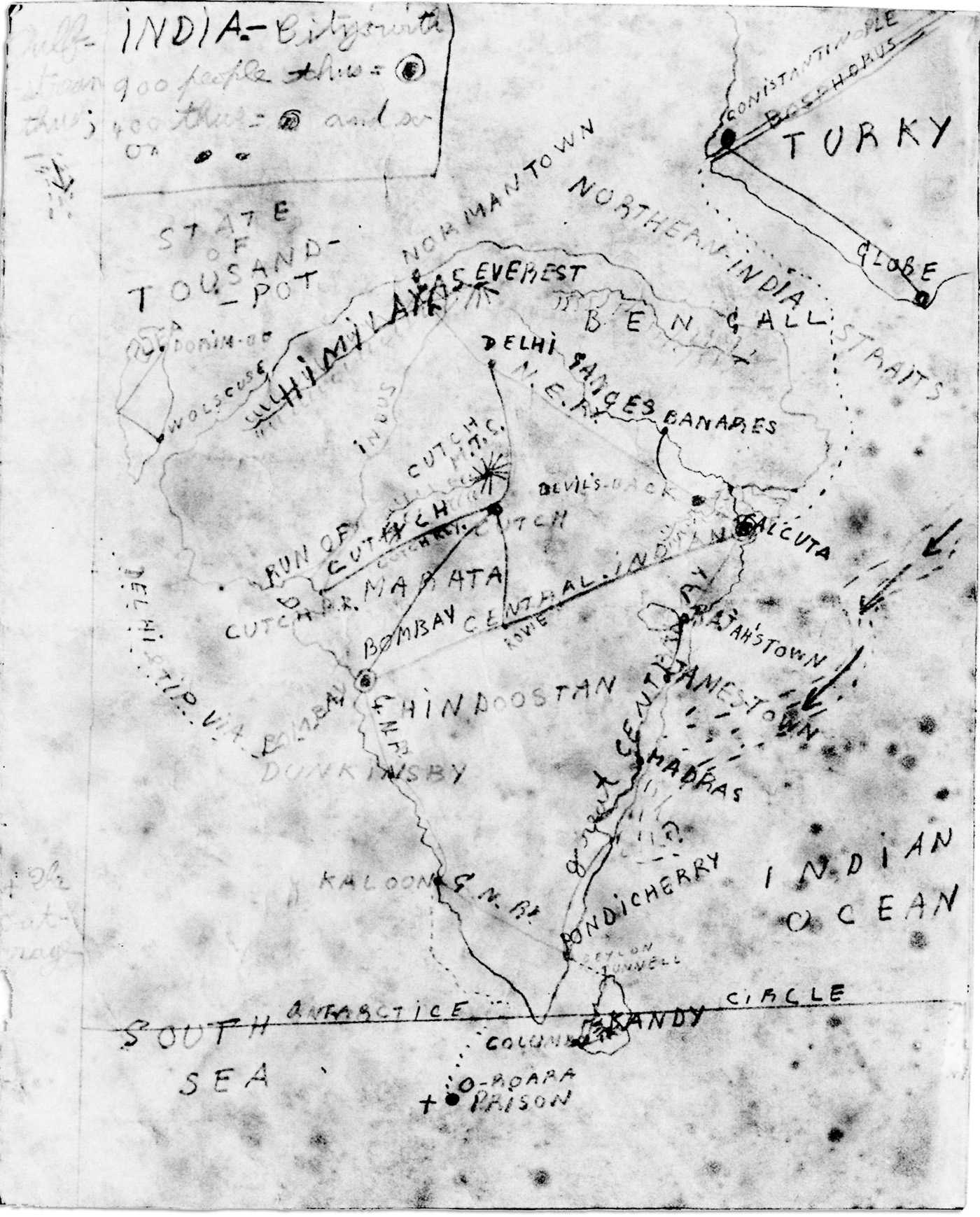 The earliest written records of Animal-Land come from the Pongeeins. That nation, under its leader Chin conquered Animal-land when still a land of barbaric tribes. These records, however useful, are often impossible and many of them must be legends. Pongee seems to have held Animal-land until its downfall, when like all empires Pongee subsided. As soon as the Pongeein soldiers were withdrawn from Animal-land the numerous & bloody tribal struggles recomenced. The chief tribes were the Cosois, Draimes, Mansquoos & some others. The first notable event was the landing of some Indian settlers in the North of Animal-land. They landed near the Jemima River, in what was after-wards Mouse-Land. The Cosois, a tribe of Mice, whose chief was Hacom, received them well. The Indians stayed, intermarried with the mice, & helped against their hostile tribes.