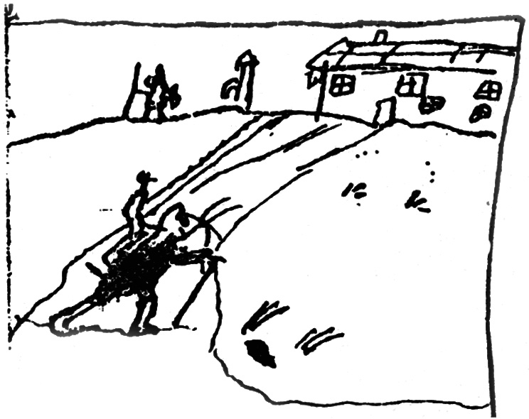 Peter next went to Pip Castle for some clients were generly waiting for him. On his way home Sir Peter saw a large mouse with out a tail!! Peter did not go back to his house but followed the stranger for some distance, and then measured his foot-mark and made a picture of it.