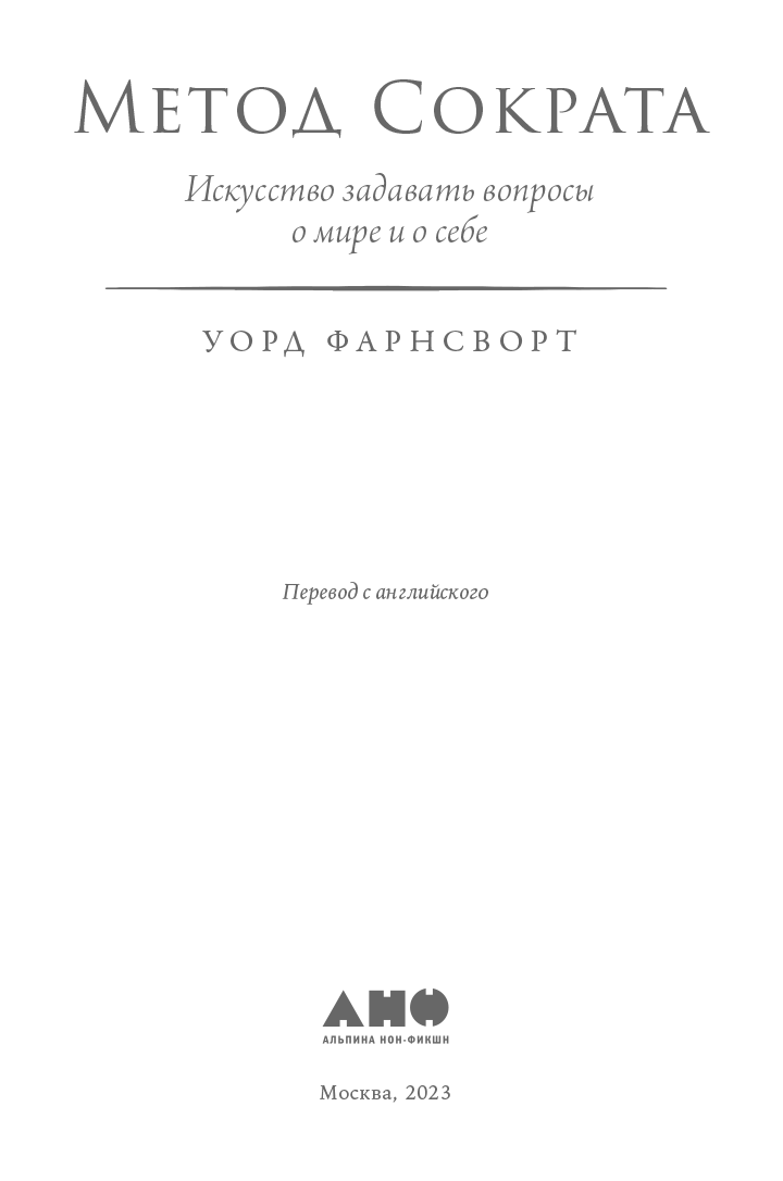 В книге объясняется, что такое сократический метод и как применять его в первозданном виде, то есть в той манере, в какой это делал сам Сократ в диалогах Платона. Это книга о том, как работает наш разум. Кроме того, в более широком смысле это и практическое введение в философию прославленного мудреца. Сократическая философия неизменно поражает: она не дает окончательных ответов на сложные вопросы, но зато содержит в себе навык задавания сложных вопросов и поиска ответов на них. Сократический образ мысли – путь к мудрости, но не сама мудрость в готовом виде; он в принципе отрицает возможность того, что мудрость может быть окончательной и завершенной. Предложенный Сократом метод полезен в размышлениях о любой проблеме, какой бы насущной или, наоборот, тривиальной она ни была, – и о том, как правильно жить, и о том, кому выгуливать собаку.
