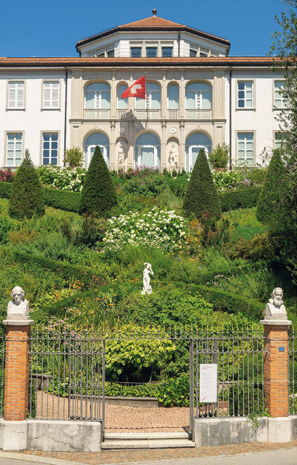 Ligornetto is a small village that lies in the large Mendrisiotto plain in the southernmost tip of the canton of Ticino, once geographically part of Lombardy. It is formed by a triangle of streets to the west of the north-south motorway (A2, Mendrisio exit, heading towards Stabio/Varese). It would hardly be distinguishable from the surrounding villages were it not for the historic villa standing high on the hill. Built in 1862–1865 in the midst of a vast park, the building with its elegant facade and central lantern tower was once the splendid studio-residence of Vincenzo Vela (1820–1891), the foremost artist’s house still maintained in Switzerland. Today it is the home of the Museo Vincenzo Vela, administered by the Swiss Federal Office of Culture.