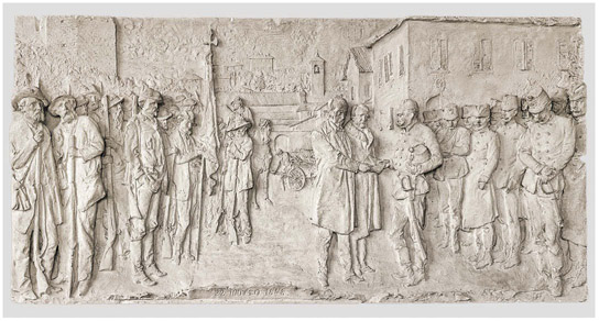 Vincenzo Vela, The Surrender of the San Francesco Barracks, a relief on the base of the Monument to Giuseppe Garibaldi and the Como Days, 1889, plaster original.