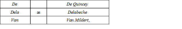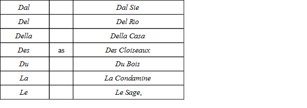 It is an acknowledged principle that when the prefix is a preposition it is to be rejected; but when an article, it is to be retained. When, however, as in the case of the French Du, Des, the two are joined, it is necessary to retain the preposition. This also applies to the case of the Italian Della, which is often rejected by cataloguers. English names are, however, to be arranged under the prefixes: