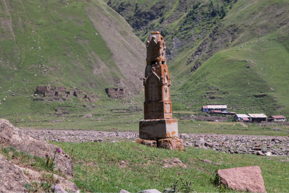 Совершенно случайно замечаю, что заднее колесо у нашего вездехода пробито. Резина замята, на ободе, вероятно, уже несколько километров едем. А при такой тряске на проселочной дороге не сразу и поймешь: камни по днищу стучат или диск по ухабам скачет. Вот вам и пословица в руку: «За двумя зайцами погонишься – ни одного не поймаешь». После такого уже не до осмотра окрестностей. Хотя в Сно есть на что посмотреть: развалины старой крепости с отлично сохранившейся башней, красивая церковь, хотя и современная, да огромные валуны с ликами известных грузин. Но все это захватываем постфактум. В отель нас отвозит сын Алекси, а сам он отправляется в мастерскую, откуда забирает машину, по его же словам, лишь поздней ночью.