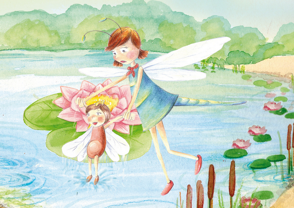 “Diana, my name’s Diana”. “What a wonderful name, I’m going to remember it forever. By the way, my name’s Lucy.” Lucy, the fly is very happy that she was rescued. Before she flies away, she waves her wing at Diana. “Bye bye, dragonfly Diana.”
