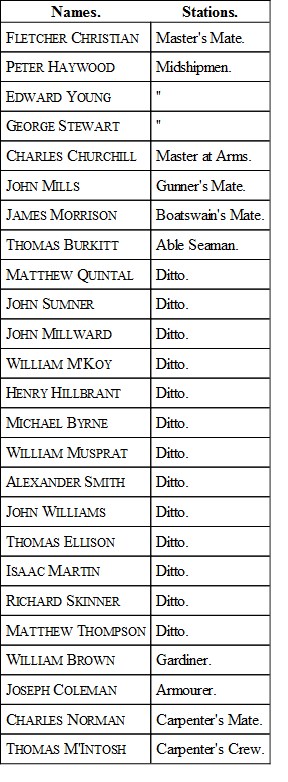 There remained on board the Bounty, as pirates,