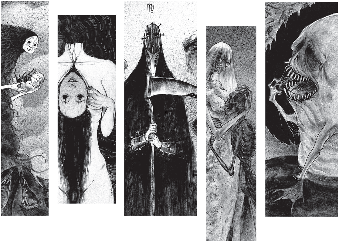 Эта книга – леденящее кровь погружение в мир темного искусства. Под одной обложкой я собрала 18 современных отечественных художников, внесших свой вклад в развитие такого направления, как дарк-арт. Среди участников проекта вы встретите графиков, живописцев, 3D-художников, тату-мастера и фотохудожника. За творчеством большей части авторов я следила множество лет и очень рада, что у меня появилась возможность популяризировать их работы.