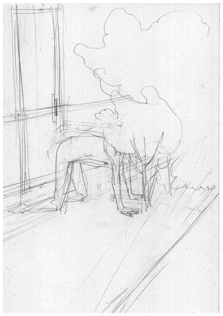 «ГОЛОВА»: Очередной выплеск злобы. У меня произошел конфликт, который вроде как закончился, но осадок и обида остались. Я показал, как мысли – бесконечные острые штрихи – скрывают настоящие эмоции и остается только крик. Он тоже будет скоро скрыт от посторонних глаз.
