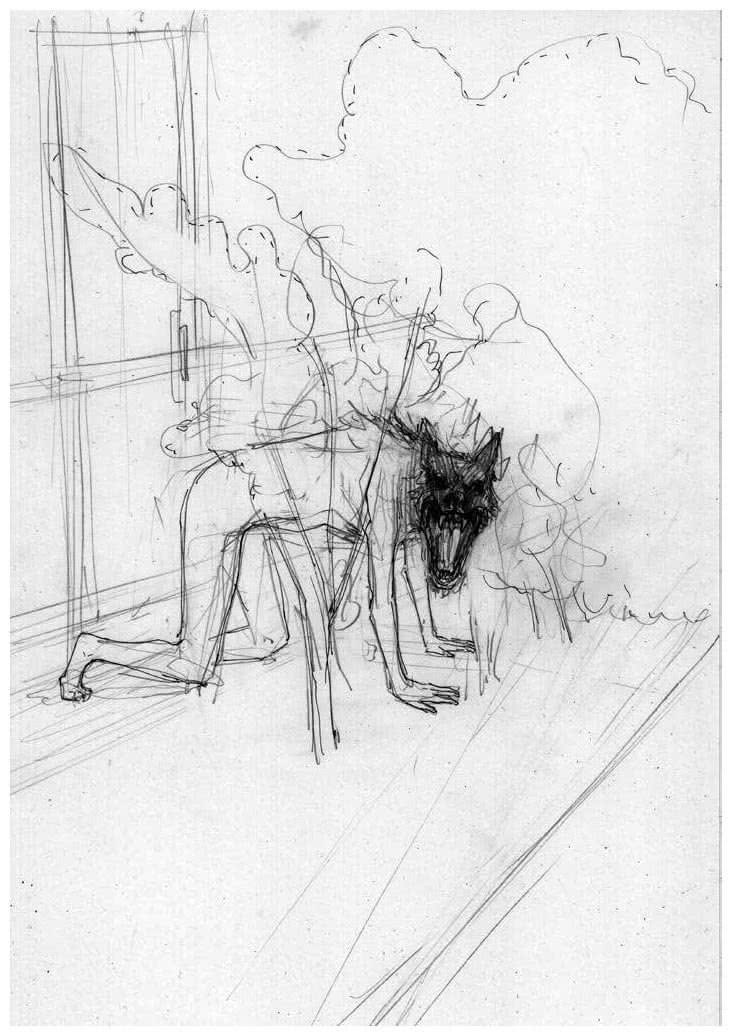 на данном варианте тоже можно остановиться, но я попробую вытащить что-то еще. например, приоткрыть завесу тайны: показать лицо человека, сокрытое в листве. нет, не лицо. пусть это будет собачья морда. достаточно ли противоествественно увидеть кинокефала[3] посреди улицы обыкновенным летним днем?
