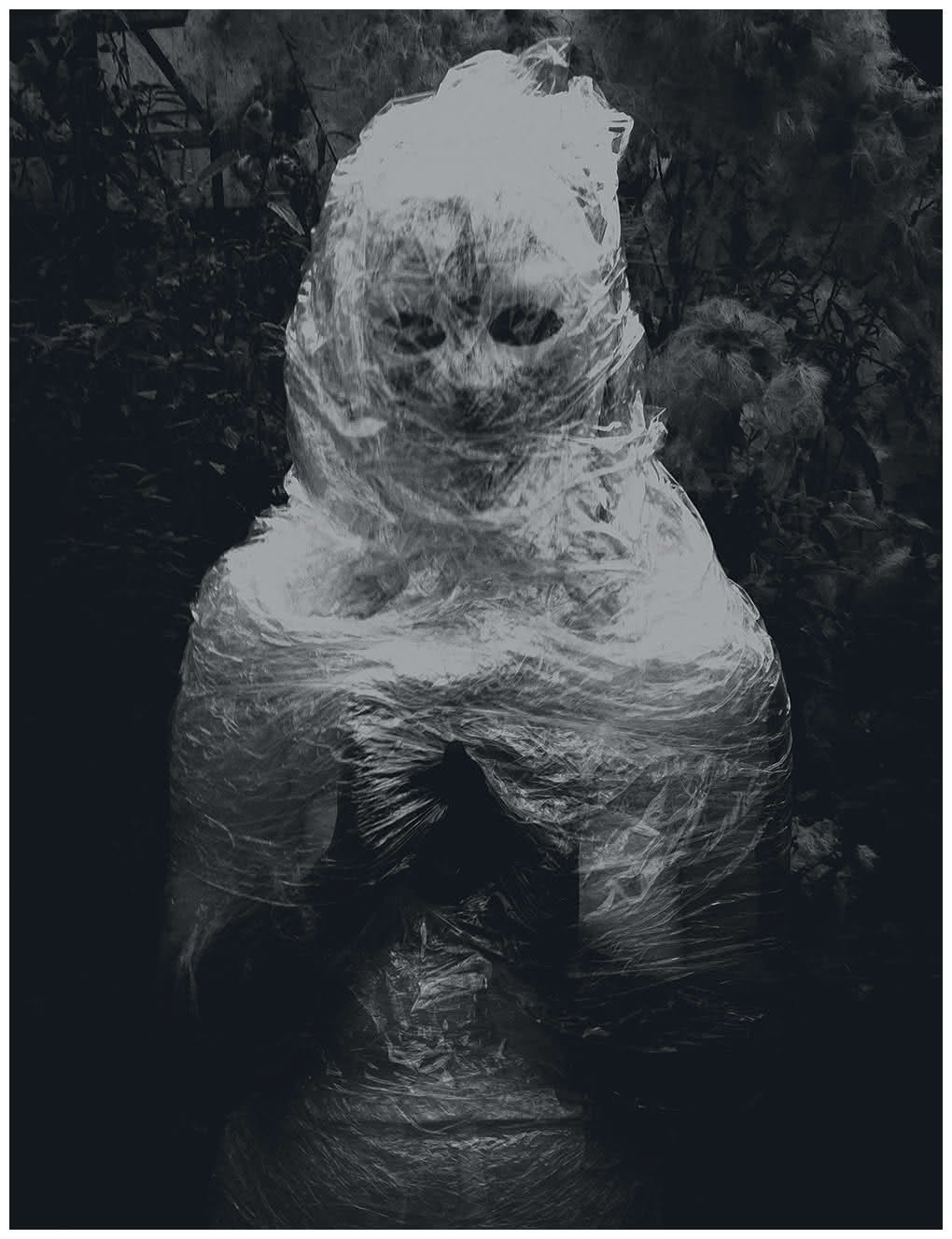 Человек-червяк? Звучит странно… Что с ним не так? Вместо кожи у него черный полиэтиленовый пакет для мусора, он обвязан ремнями, и во рту у него кляп.