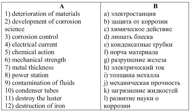 3 . Match the English phrases from column A with the Russian phrases in column B.