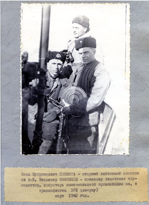 «. 1. Кукуй Григорий Аронович, старший лейтенант, командир лодки. 2. Сколота Яков Куприянович, старший лейтенант, комиссар лодки.