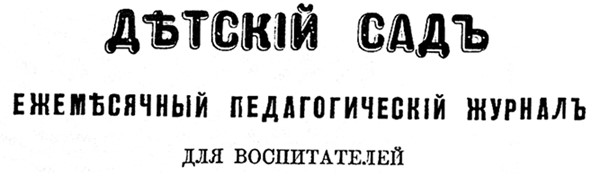 Более того, за три года в журнале был представлен едва ли не полный обзор необходимых педагогических и организационных сведений для создания детских садов. Журнал послужил важнейшим импульсом к развитию «детсадовского» движения в России и создал для него ту идейную и методическую базу, которая непоколебимо служила вплоть до революции. (А собранная позднее во многом на основе статей этого журнала книга Аделаиды Симонович «Детский сад» была общепризнанным главным дореволюционным педагогическим «дошкольным» учебником).