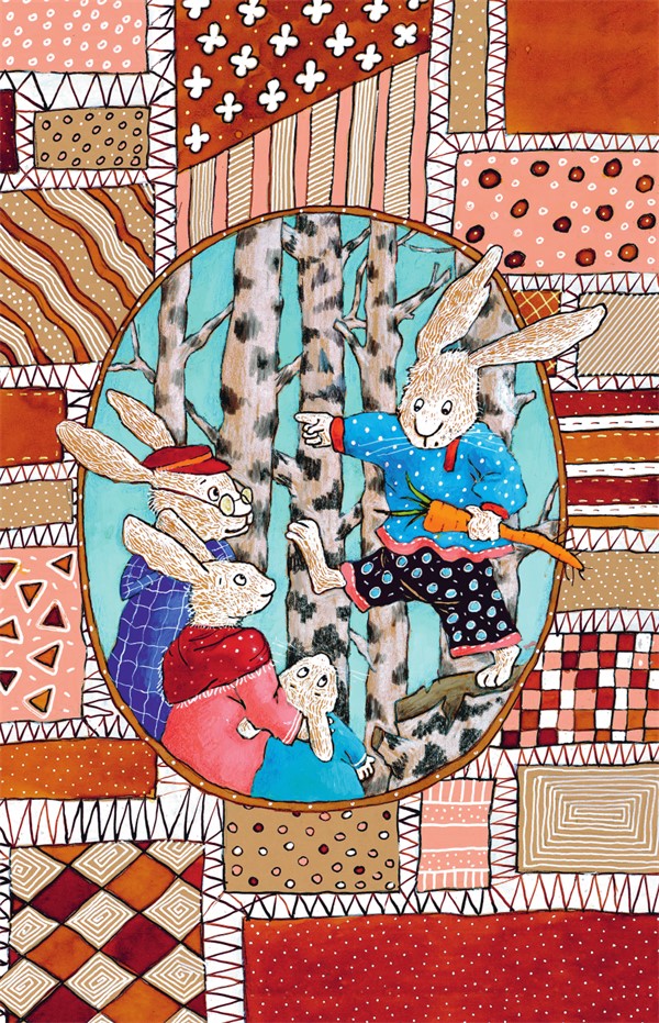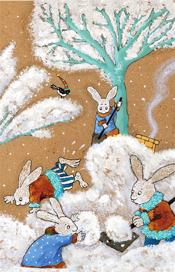 А зайцы утром встали, видят – зима. Переоделись в белые шубки и стали на избушку смотреть. Вдруг видят – дымок.