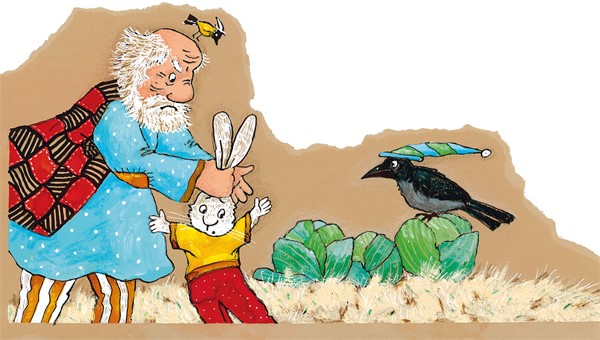 И вот вышел дед с вечера на огород, притаился в капусте, ждёт. Вдруг видит: кто-то прыг-скок на грядку, прыг-скок, подскочил к капусте и захрустел. Но дед тоже не дурак – прыг-скок и цоп! – ухватил за уши зайца и выдернул его из огорода, словно морковку.