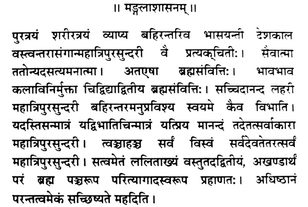 Вышеприведённый пассаж из Ригведы 11 составляет сущность Шри Видьи 12 – материнского аспекта Вселенной – и ясно заявляет о всепроникающей и монистической природе Трансцендентальной Энергии (Пара-шакти 13) как единой системообразующей сущности всей Вселенной в состоянии проявления. Он гласит: