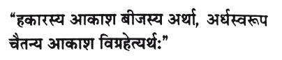 Вот один пример, поясняющий сказанное. При произнесении слога ам губы сжимаются и действия тела приостанавливаются. Аналогичные явления происходят в медитации при повторении ом, также представляющего инволюцию. А вот ах невозможно произнести сжав губы, здесь рот должен быть открыт. Произнесение слога ах предусматривает действие. То, что ах означает творящую силу, подтверждает и Бхагавадгита 48 (VIII:2):