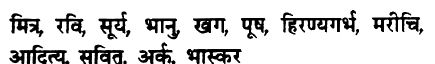 Митра, Рави, Сурья, Бхану, Кхага, Пуша, Хираньягарбха, Маричи, Адитья, Савитар, Арка, Бхаскара.