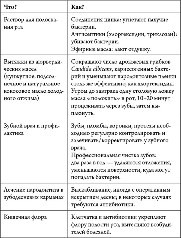 Если источник зла кроется в полости рта и глотки, то, естественно, в первую очередь поможет гигиена рта, и главным образом – чистка зубов. Сейчас я вас удивлю: о чем бы ни вещала реклама, но развитие кариеса никоим образом не зависит ни от модели зубной щетки, ни от марки пасты. Для лабораторных условий и людей с физическими ограничениями лучше подходят электрические зубные щетки. Однако в реальной жизни они не дают существенного преимущества для выживания ваших зубов, тем более что вибрирующие приборы для чистки некоторым людям неприятны.