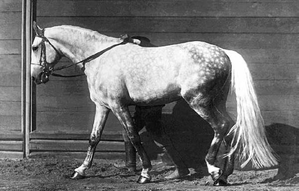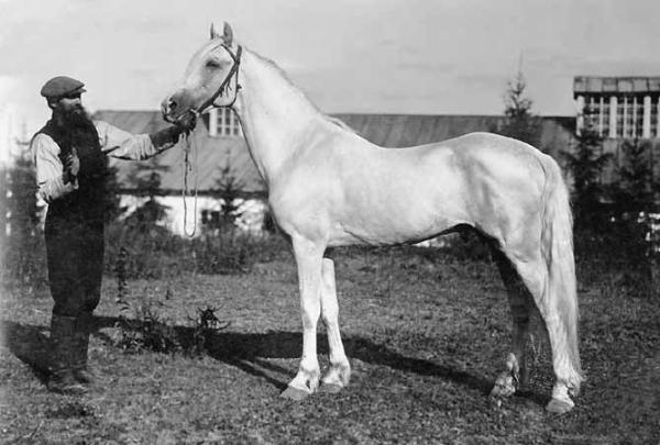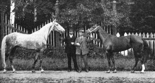 Когда мне исполнилось одиннадцать лет, я прочел повесть Льва Толстого «Холстомер». Судьба злополучного, но великого пегого мерина так повлияла на мое детское воображение, что я полюбил пегих лошадей. С тех пор я мечтал завести пегий завод, но наш заводской наездник, когда я поделился с ним своими мечтами, стал смеяться, говоря, что пегих рысистых лошадей не бывает. Это очень меня огорчило и заставило призадуматься: как же Толстой написал, что Холстомер, знаменитый рысак, был пегим? В это время случилось событие, которое привело меня в восторг и надолго взволновало. Портаненко прислал отцу с Ильинской ярмарки, которая собиралась ежегодно в Полтаве, четверку вороно-пегих лошадей. Когда об этом доложили отцу, он рассердился, выругал Портаненку цыганом и сказал, что в жизни не ездил на «сороках» и ездить не будет. Услышав о том, что привели пегую четверку, я устремился в конюшню и буквально обомлел от восторга. Это была четверня вороно-пегих лошадей, удивительно подобранных, рослых и таких красивых, что мне казалось, лучших лошадей на свете и быть не может. Четверню запрягли в шарабан и выехали со двора, чтобы показать ее отцу. Я стремглав бросился в дом сообщить о событии, ибо в моих глазах это было событие, и вся наша семья с отцом во главе вышла посмотреть новую четверку. Первая езда этой четверки и сейчас стоит перед моими глазами, словно это было вчера… Пристяжные вились кольцом, белые и черные ноги пегарей мелькали, вся четверня была необыкновенно эффектна и всем понравилась. «Подлец Портаненко, – добродушно сказал отец. – Уж очень хороши пегари – придется оставить». Судьба четверни была решена, и отец подарил ее моей матери, а сам так ни разу и не захотел поехать на «сороках». Эта четверня стала любимой четверней детей, и мы часто на ней катались. Я всегда взбирался на козлы и не переставал любоваться красивыми пегарями. На конном заводе решили, что четверка не иначе как заводская, и наездник, уверявший меня, что нет пегих рысистых лошадей, был посрамлен.