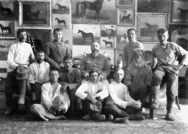 Группа тульских коннозаводчиков: Г. Г. Апасов, А. П. Офросимов, Я. И. Бутович, гр. А. Л. Толстой и Лесковский. 1914 г.