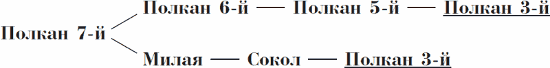 Скажу теперь несколько слов о происхождении Полкана 7-го. Его отец – Полкан 6-й, и этим все сказано! Его мать – Милая, дочь Сокола, сына Полкана 3-го, и Дунайки, родной внучки знаменитой Весны, матери Чистяка 3-го. Однако есть еще одно обстоятельство, на которое следует обратить внимание: это закрепление в родословной Полкана 7-го имени Полкана 3-го по следующей формуле: