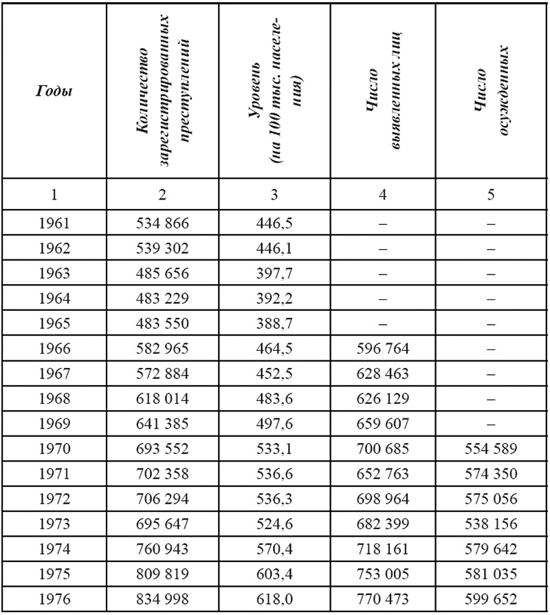 Таблица 2. Зарегистрированная преступность, число выявленных лиц и осужденных в России (1961–2016)[79]