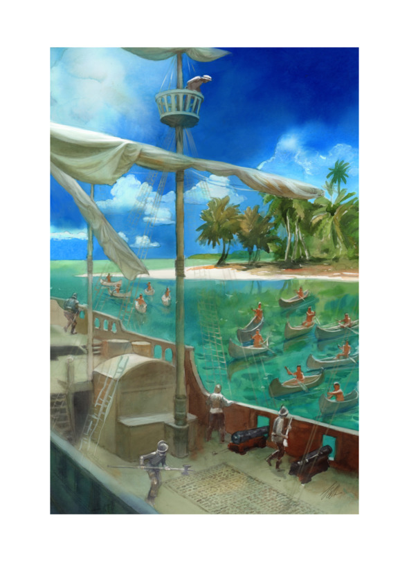 Наступает торжественный момент прощания с Европой: в окрестном монастыре каждый конкистадор приносит присягу верности испанскому королю, губернатору и капитану, которому он непосредственно подчиняется. Наконец корабли выходят из гавани в открытый океан на бескрайние просторы Атлантики. Если и это плавание пройдет благополучно, то примерно через 40 дней новые завоеватели высадятся в желанных «Западных Индиях», а точнее в Новом Свете. Что ждет их там? Слава и богатство? Забвение и нищета? А может, преждевременная смерть?