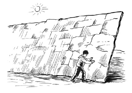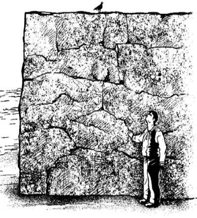 Рис. 2. Задача Эдисона: надо без всяких орудий сдвинуть с места трехтонную гранитную скалу в 100 футов длины и 15 футов высоты