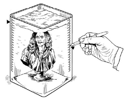 Прежде всего нужно определить объем статуэтки. Для этого наливаем в прямоугольную банку воду, замечаем высоту уровня воды и погружаем нашу статуэтку: по повышению уровня воды легко вычислить объем изделия. Пусть ширина банки 12 см, длина 15 м, а уровень воды поднялся на 1,5 см. Тогда объем воды, вытесненной изделием, равен 12 × 16 × 1,5 = 270 см3. Но эта прибавка есть, конечно, объем статуэтки. 1 см3 меди весит около 9 г. Поэтому, если бы вещь была сплошная, она весила бы примерно