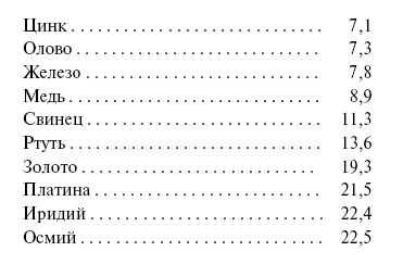 В обиходе свинец считается тяжелым металлом. Он тяжелее цинка, олова, железа, меди, но все же его нельзя назвать самым тяжелым металлом. Ртуть, жидкий металл, тяжелее свинца; если бросить в ртуть кусок свинца, он не потонет в ней, а будет держаться на поверхности. Литровую бутылку ртути вы с трудом поднимете одной рукой: она весит без малого 14 кг. Однако и ртуть не самый тяжелый металл: золото и платина тяжелее ртути раза в полтора.