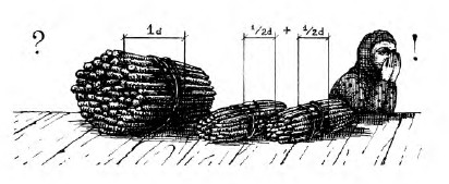 Одна женщина обыкновенно покупала у зеленщика спаржу большими пучками, каждый 40 см в окружности. Покупая, она мерила их, чтобы убедиться, что ее не обманывают. Но однажды у торговца не оказалось 40-сантиметрового пучка, и он предложил покупательнице за те же деньги два тонких пучка, каждый по 20 см в обхвате.