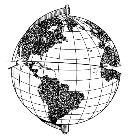 Рис. 3. Простой способ отыскания действительно кратчайшего пути между двумя пунктами: надо на глобусе натянуть нитку между этими пунктами
