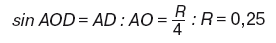 Проведя прямую OD, соединяющую центр O земного шара с серединой D хорды AB, получаем прямоугольный треугольник ODA, где угол D – прямой: