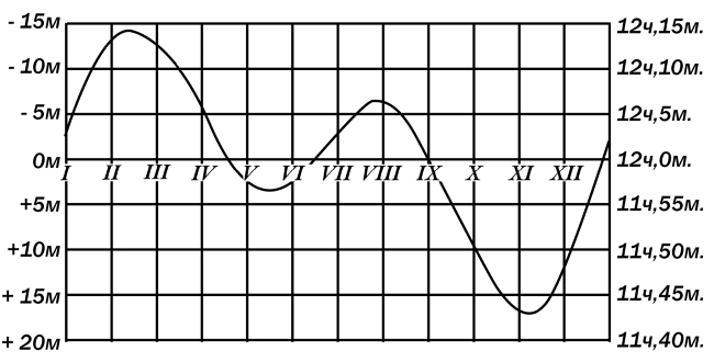 разница между истинным и средним временем достигает наибольшей величины – около четверти часа. Кривая на рис. 7 показывает, как велико это расхождение в разные дни года.