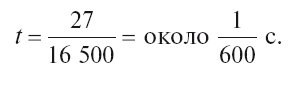 Мы видим, что за 600-ю долю секунды скорость пули должна возрасти от 0 до 270 м/с. Ясно, что за целую секунду прибавка скорости, так стремительно нарастающей, должна быть огромна.
