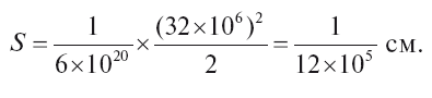 Такова величина ускорения, приобретаемого в этом случае земным шаром. На сколько же сдвинется планета в столь медленно ускоряющемся движении? Это зависит от продолжительности движения. И без расчёта ясно, что за какой-нибудь час или сутки перемещение будет слишком ничтожно. Возьмём крупный интервал – год, т. е. круглым счётом 32 млн секунд (32 ×106). Путь 5, проходимый в t секунд при ускорении а, равен (см. справочную табличку с. 31).