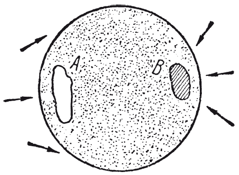 Рис. 15. Пустоты (А) и уплотнения (В) в толще земного шара отклоняют отвес (по А. В. Клоссовскому)