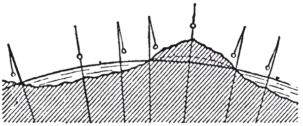 Рис. 16. Профиль земной поверхности и направления отвесов (по А.В. Клоссовскому)