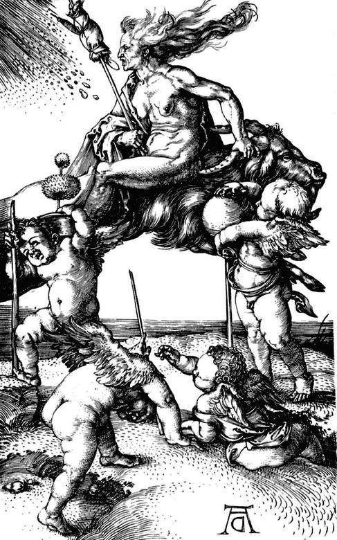 Aльбpexm Дюpep. BEДЬMA BEPXOM ΗA KO3ЛΕ. OK. 1500 г.