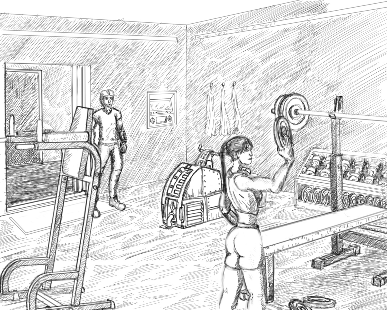 За дверью оказалось большое помещение, заполненное различными тренажёрами и стеллажами с гантелями, грифами и блинами. Бегло осмотрев весь спортивный инвентарь, отметил, что несколько тренажёров видел впервые и понятия не имел, как они работают.