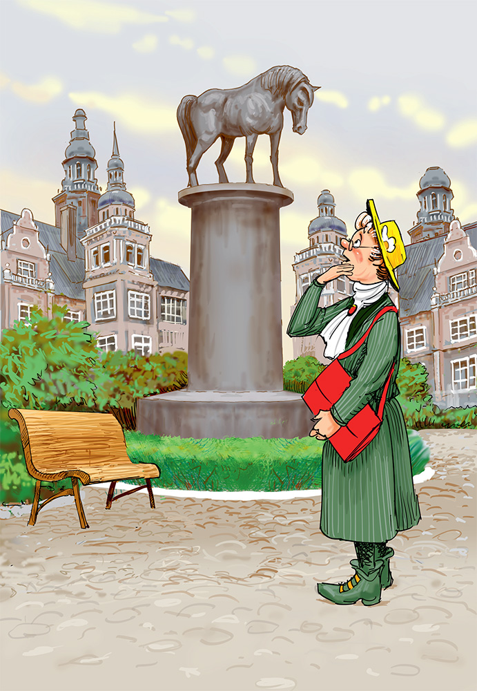 В центре площади высится здоровенная каменная статуя. Это конь – просто конь, и больше никого!