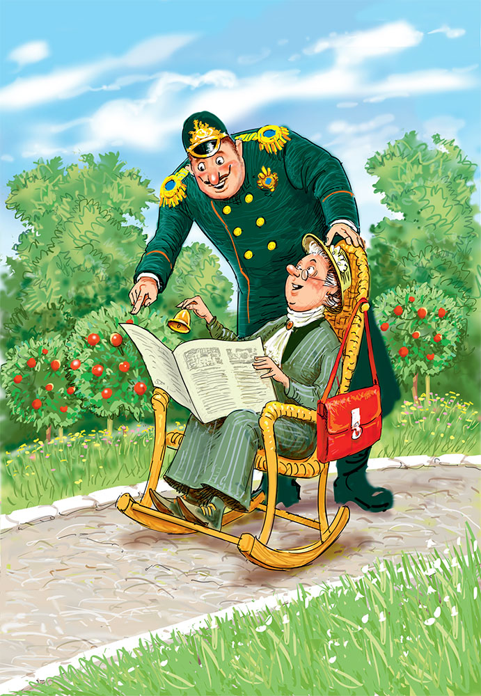 Да потому, что фрёкен Сталь не может забыть школу. Поэтому она всегда носит в сумке жёлтый колокольчик и делит весь свой день на уроки, а сейчас у неё – перемена на завтрак.